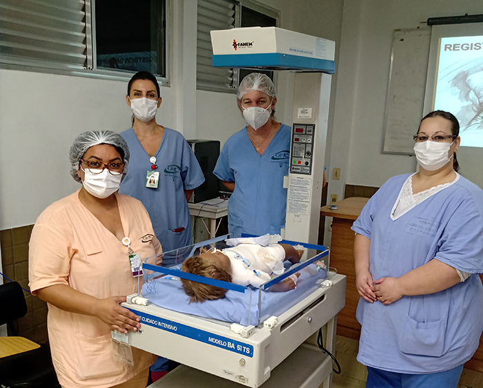 No plantão do dia 23 de abril, na Noite B do Hospital Criança Conceição (HCC), foi realizado com a equipe de enfermagem uma capacitação sobre Registros de Enfermagem. Foi usado como metodologia a simulação realística, montando cenários clínicos, replicando situações do dia a dia, permitindo uma experiência prática, seguida de reflexão guiada e conteúdo teórico sobre o tema. A pergunta era: Como você faria os registros de enfermagem se esse paciente fosse da sua escala de trabalho?