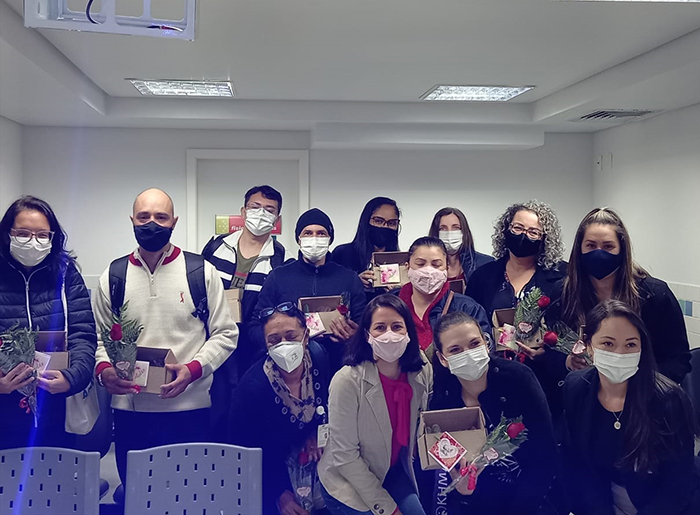 Uma iniciativa da enfermeira Luciana Lemos de Freitas do Hospital Conceição homenageou os técnicos e auxiliares de enfermagem da Unidade de Internação Covid 2ºA, no dia 18 de maio. Ela exibiu depoimentos de familiares desses profissionais como forma de honrá-los.
