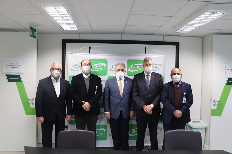 O ministro da Saúde, Marcelo Queiroga, visitou o Grupo Hospitalar Conceição na tarde desta sexta-feira, 2 de julho. Na ocasião, ele se reuniu com os diretores Cláudio Oliveira, Moises Prevedello e Francisco Paz, que entregaram o Relatório Integrado do GHC 2020, onde constam as ações da instituição.