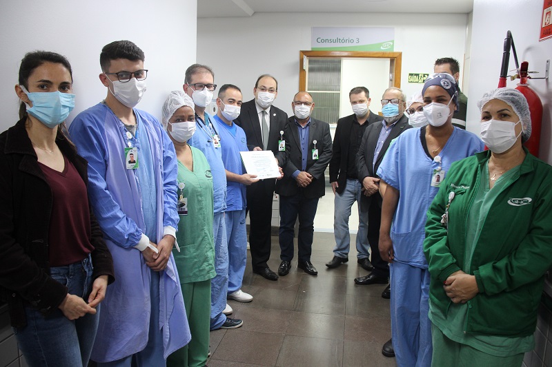 Coordenadores e representantes das categorias funcionais estiveram presentes no ato que reconheceu o empenho e a dedicação da equipe. O gerente de Interunidades de Emergências do GHC, Cleber Verona, agradeceu em nome de todos, destacando o orgulho dessa conquista, especialmente neste período de pandemia, quando “a equipe têm desempenhado seu papel com maestria”.