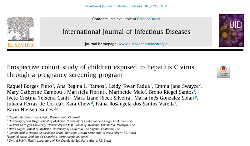 Recentemente, a revista "International Journal of Infectious Diseases", da Sociedade Internacional de Doenças Infecciosas, publicou a pesquisa “Estudo de coorte prospectivo de crianças expostas ao vírus da Hepatite C mediante o rastreamento em gestantes”, realizada por médicos do Grupo Hospitalar Conceição (GHC).