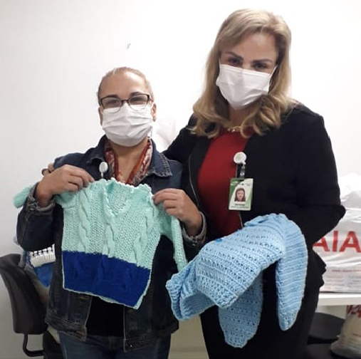 O Grupo de Senhoras “Família do Bem Aquecendo o Próximo” entregou ao Hospital Criança Conceição (HCC) 820 peças de roupas entre conjuntos de tricô, mantas, casacos, toucas, sapatinhos e cobertores confeccionados por 60 mulheres que tricotam, costuram e colocam muito amor em suas mãos. Essa ação encerra a campanha do agasalho promovida pelo HCC, que, prevista para encerrar em julho, prolongou-se até o mês de agosto devido ao grande número de doações recebidas, que aqueceram os pacientes.