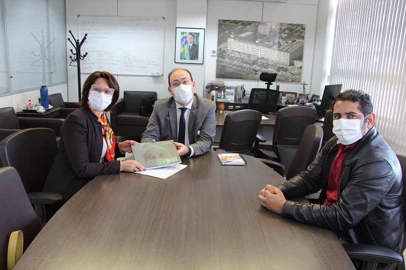 O diretor-presidente do Grupo Hospitalar Conceição, Cláudio Oliveira, recebeu na manhã desta segunda-feira, 30 de agosto, a visita da ex-prefeita do município de Cristal, do período de 2017-2020, Fábia Richter. Ela veio conhecer a instituição e recebeu o Relatório Integrado do GHC 2020.