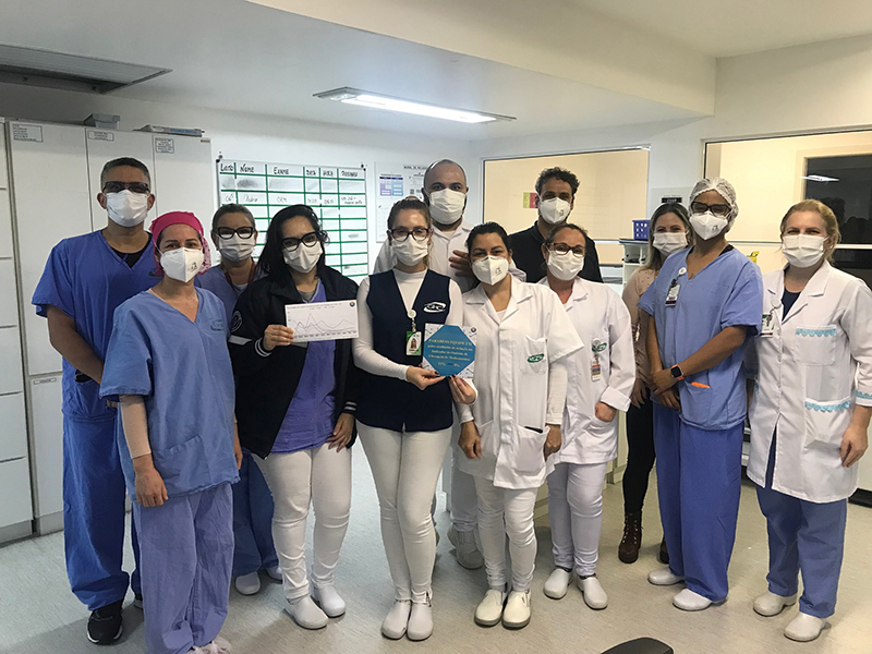 No dia 9 de setembro, a equipe de enfermagem da unidade 2ºI1 - Cardiologia e Cirurgia Cardíaca – do Hospital Conceição (HNSC) recebeu reconhecimento por ter atingido a meta de redução no indicador de omissão de checagem de medicamentos em mais de 50%, após implementação de uma nova tecnologia. A coleta do indicador de omissão de medicamentos é realizada quinzenalmente pela Gestão de Risco Assistencial do HNSC, bem como divulgado aos profissionais.