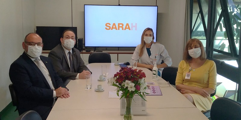 O diretor-presidente do Grupo Hospitalar Conceição, Cláudio Oliveira, e o diretor administrativo e financeiro, Moises Prevedello, visitaram nessa quinta-feira, 11 de novembro, a sede da Rede Sarah de Hospitais de Reabilitação, em Brasília. Recebidos pela diretora-tesoureira do Sarah, Célia Corrêa, e pela enfermeira Bianca, os dirigentes do GHC foram conhecer o trabalho desenvolvido com os higienizadores do hospital. Na ocasião, eles convidaram a enfermeira Bianca para dar uma palestra e se reunir com gestores da higienização do Grupo Conceição para revisão e melhoria dos processos de trabalho.