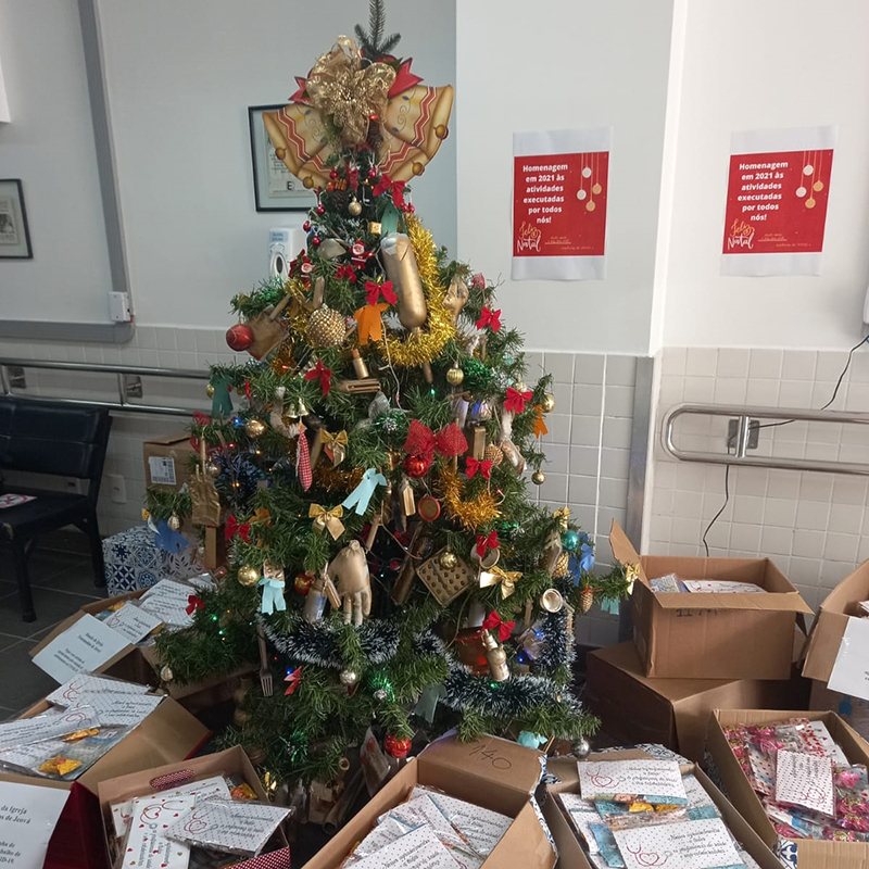 A árvore é uma iniciativa do Setor de Hotelaria da Gerência de Administração do hospital e está montada no saguão térreo do Bloco I, onde ficará durante todo o período de Natal.