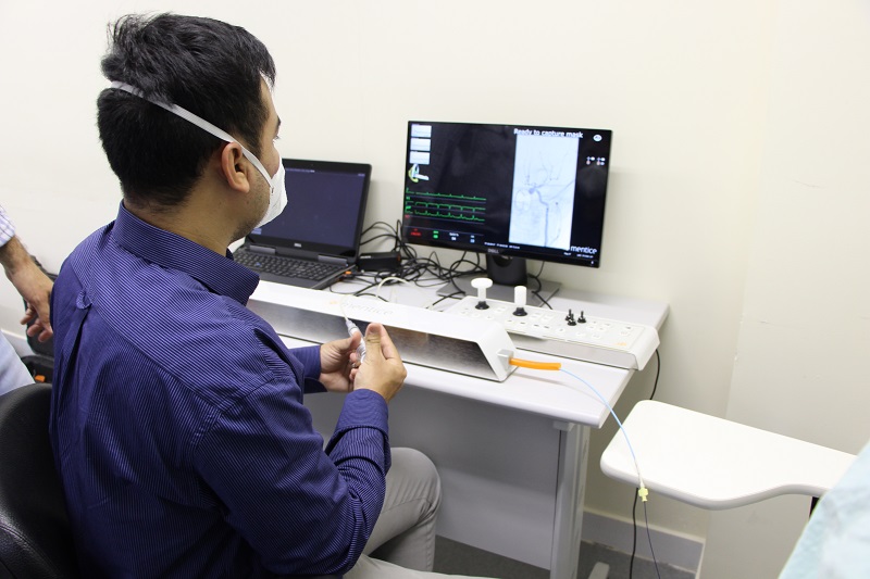 Nessa quinta-feira, 17 de fevereiro, foi realizado o novo treinamento em simulador de procedimentos de Neurorradiologia Intervencionista do GHC. Trata-se de uma simulação de casos com doenças vasculares intracranianas em que os residentes de Neurocirurgia treinam os movimentos que fariam num paciente, durante um procedimento endovascular, como os realizados na Hemodinâmica do Hospital Conceição pela equipe da Neurorradiologia Intervencionista, coordenada pelo médico Gabriel Mossmann. Após rodar pelo Brasil, este equipamento foi disponibilizado como cortesia pelas empresas Medtronic e RBG.