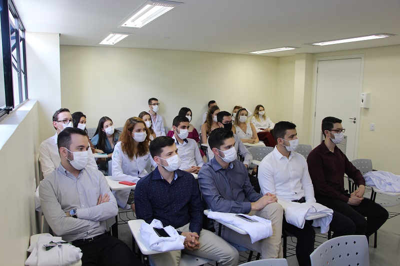 Foi realizada na manhã dessa quarta-feira, 23 de fevereiro, a solenidade de formatura de 23 médicos residentes da Medicina Interna no Hospital Conceição (HNSC). Os profissionais receberam o agradecimento e a homenagem dos seus preceptores Lana Catani, coordenadora do Serviço de Medicina Interna do HNSC, Eduardo Fernandes, supervisor do Programa de Residência Médica do HNSC, e Winston Benjamin. Além disso, participou da solenidade a técnica de enfermagem Ananda França, funcionária homenageada pelos formandos. A turma, reconhecida nas palavras de seus preceptores como "a turma da pandemia", atuou diretamente no enfretamento aos casos de Covid-19.