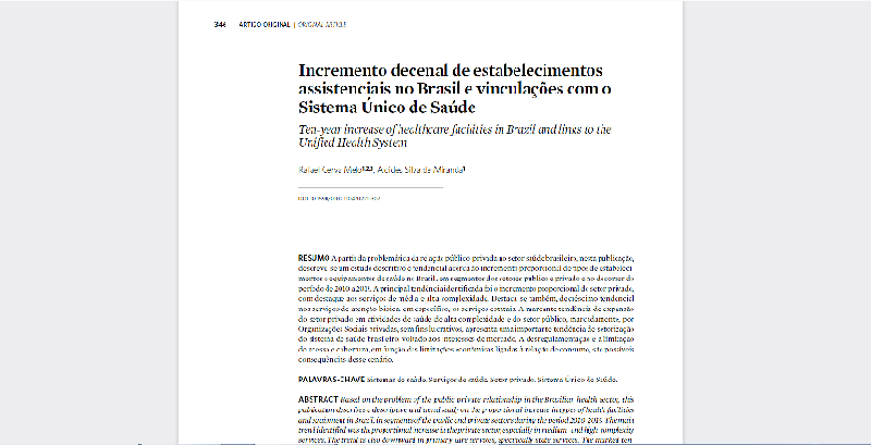 O enfermeiro da unidade 4ºB1 do Hospital Conceição e preceptor do programa de Residência em Gestão de Saúde do GHC, Rafael Cerva Melo, tem artigo publicado na Revista Saúde em Debate. O artigo intitulado "Incremento decenal de estabelecimentos assistenciais no Brasil e vinculações com o Sistema Único de Saúde / Ten-year increase of healthcare facilities in Brazil and links to the Unified Health System".
