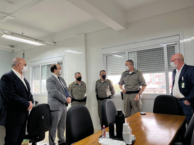 Na manhã desta terça, 26 de julho, o diretor-presidente do Grupo Hospitalar Conceição, Cláudio Oliveira, recebeu juntamente com o gerente de Administração do Hospital Cristo Redentor, Décio Agnes, e o gerente de Internação, José Fossari, o Comandante-Geral da Brigada Militar do Rio Grande do Sul, coronel Cláudio Feoli.