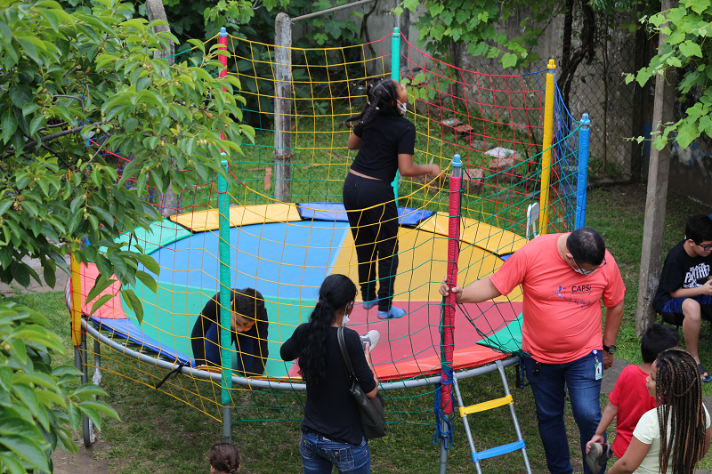 Nessa quinta-feira, dia 20 de outubro, a equipe do Centro de Atenção Psicossocial à Infância e à Adolescência (CAPSi) Pandorga do Grupo Hospitalar Conceição (GHC) celebrou o aniversário de 12 anos da unidade com uma festa para os pacientes com direito à cama elástica e bolhas gigantes de sabão.