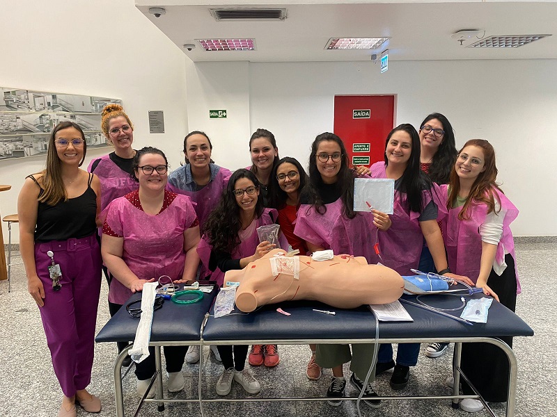 Neste ano, os acadêmicos de Enfermagem voltaram a ter aulas presenciais, propiciando a interação presencial com os instrutores. As residentes do primeiro ano participaram como ouvintes, enquanto as residentes do segundo ano participaram como instrutoras de estações práticas, bem como palestrantes de aulas expositivas-dialogadas.