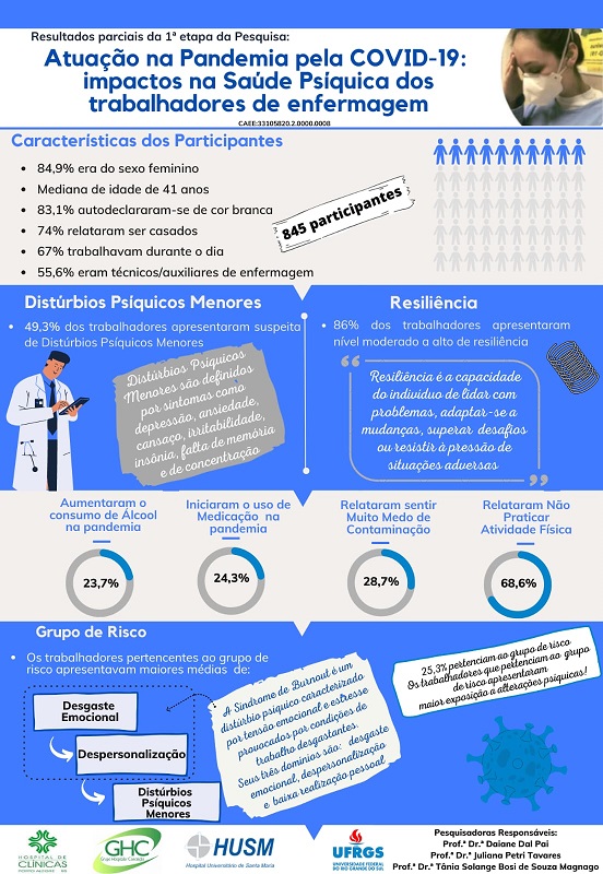 A Gerência de Ensino e Pesquisa convida você, que é trabalhador de enfermagem do Grupo Hospitalar Conceição, para responder à segunda fase da pesquisa "Atuação na pandemia pela Covid-19: impactos na saúde dos trabalhadores de enfermagem". Clique aqui para preencher o formulário.