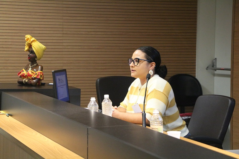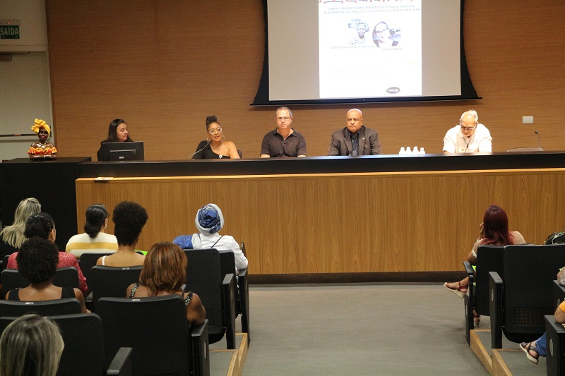 O público assistiu às palestras da doutora em educação e mestre em tecnologia e trabalho Iyaguña Dalzira Maria Aparecida e da psicóloga e especialista em terapia cognitivo-comportamental Vitória Porto. A primeira palestrante discutiu o racismo no Brasil pelos recortes de gênero, raça e religiões de matriz africana, enquanto a segunda, apresentou os desafios no atendimento de mulheres vítimas de violência doméstica e explicou o “ciclo de violência”.