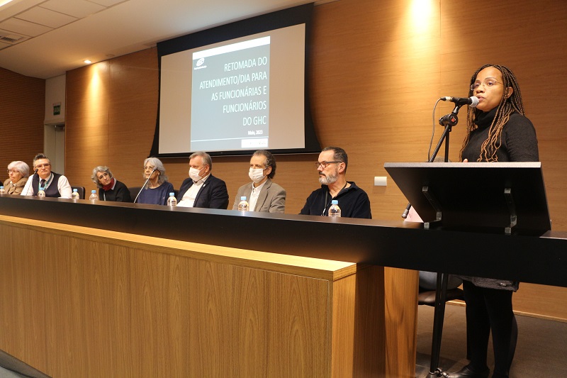 A fim de restabelecer uma Política de Saúde do Trabalhador que atenda às necessidades de saúde e segurança dos trabalhadores em consonância com os princípios e diretrizes do Sistema Único de Saúde (SUS), o Grupo Hospitalar Conceição retoma a partir desta segunda-feira, 29 de maio, o atendimento/dia das funcionárias e funcionários da instituição. O anúncio foi feito durante ato realizado no Auditório Jahyr Boeira de Almeida, com a presença da Diretoria do GHC, demais gestores, trabalhadores e representantes de sindicatos e entidades ligadas às categorias funcionais do Grupo. As consultas/dia reabrem no Ambulatório do Hospital Conceição nas especialidades de Clínica Médica, Ginecologia e Traumatologia.