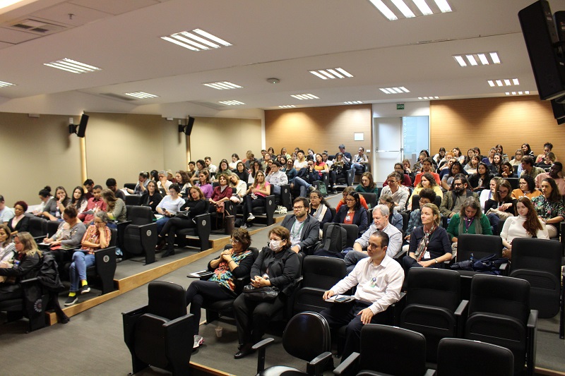 Presentes à mesa estiveram o secretário adjunto da Atenção Primária à Saúde do Ministério da Saúde, Prof. Dr. Felipe Proenço, a diretora do Departamento de Atenção Básica do Ministério da Saúde entre 2008 e 2010, Profª. Drª. Claunara Mendonça, e a gerente de Saúde Comunitária do GHC, Gerusa Bittencourt.