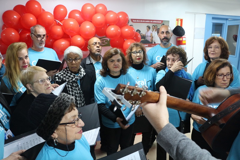 As 10h, o coral da Associação dos Servidores do GHC (ASERGHC) fez uma apresentação para a equipe do Banco de Sangue e doadores que aguardavam para fazer doar sangue.