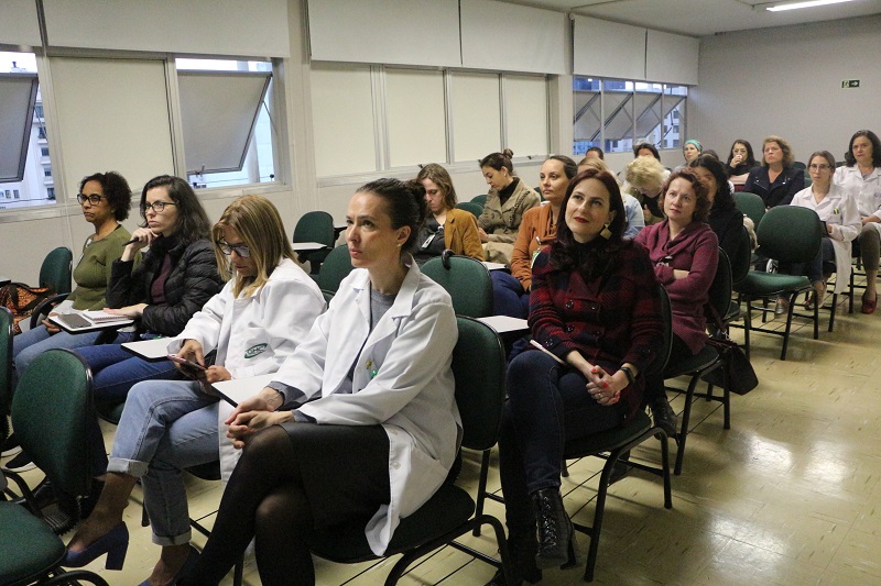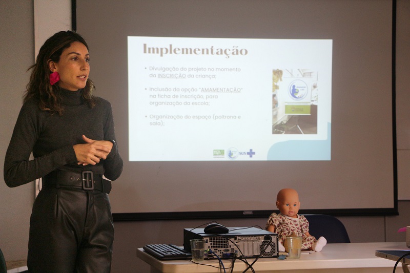 Pensando na temática deste ano da Semana Mundial de Aleitamento Materno, "Apoie a Amamentação: faça a diferença para mães e pais que trabalham", foi ministrada a palestra "Mamanalgesia: práticas e perspectivas", com a enfermeira do Departamento de Enfermagem Materno-Infantil da Escola de Enfermagem da Universidade Federal do Rio Grande do Sul Alessandra Vaccari, e também foi apresentado pela nutricionista do Núcleo de Promoção em Saúde da Secretária Municipal de Saúde de Porto Alegre Cintia Costa o projeto "Amamentar é tri".