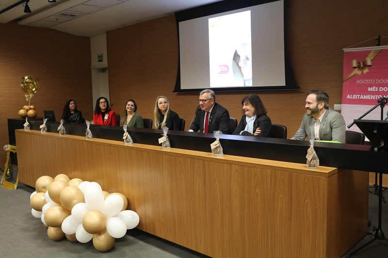 Participaram da mesa de abertura o diretor-presidente do GHC, Gilberto Barichello, a coordenadora do Giame e presidente do comitê organizador do evento, Aline Bergman, a coordenadora da Linha de Cuidado Mãe-Bebê do HNSC, Lisete Ambrosi, o médico da coordenação da Linha de Cuidado Mãe-Bebê do HNSC, Paulo Sérgio Mario, a chefia de enfermagem da UTI Neonatal do Hospital Criança Conceição, Carolina Schwartz dos Santos, e a chefia médica da UTI Neonatal do Hospital Criança Conceição, Cátia Soares.