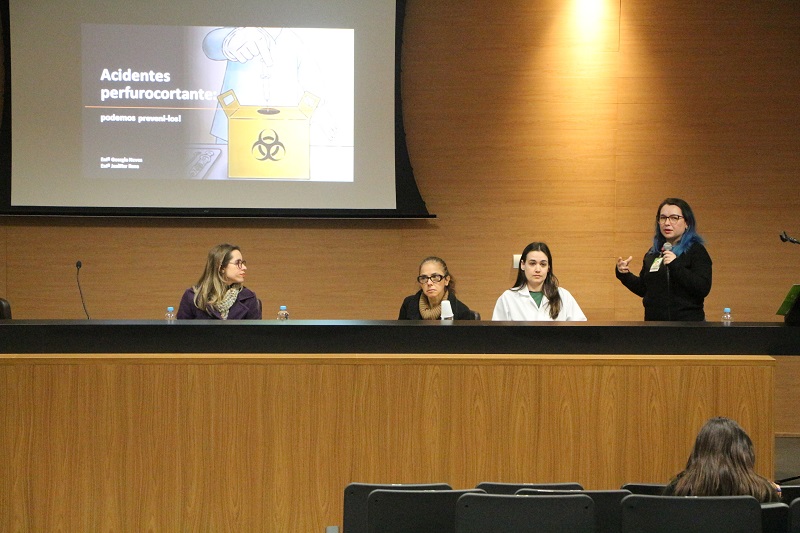 • 15h30min - Mesa Redonda - "Reflexão sobre acidentes perfurocortantes: podemos preveni-los!", com, as enfermeiras Daisy Duarte e Georgia Conceição, a técnica em Segurança do Trabalho Lisiane Carvalho e a coordenadora da Higienização do HCC, Josiane Souza.
