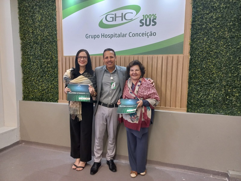 No dia 12 de novembro último, a Ouvidoria do Grupo Hospitalar Conceição recebeu a visita das representantes do Ministério da Saúde Maria Isabel Monteiro, Analista Sênior responsável pela supervisão técnica das Ouvidorias dos Hospitais Federais, e Micaella Araujo, Analista de Ouvidoria também e referência técnica das Ouvidorias do Estado do Rio Grande do Sul. Recepcionadas pelo Ouvidor Geral do GHC, Jonas Ribeiro, o objetivo do encontro foi promover a troca de experiências sobre as práticas de Ouvidoria adotadas pela instituição, além de realizar uma visita técnica aos hospitais do Grupo.
