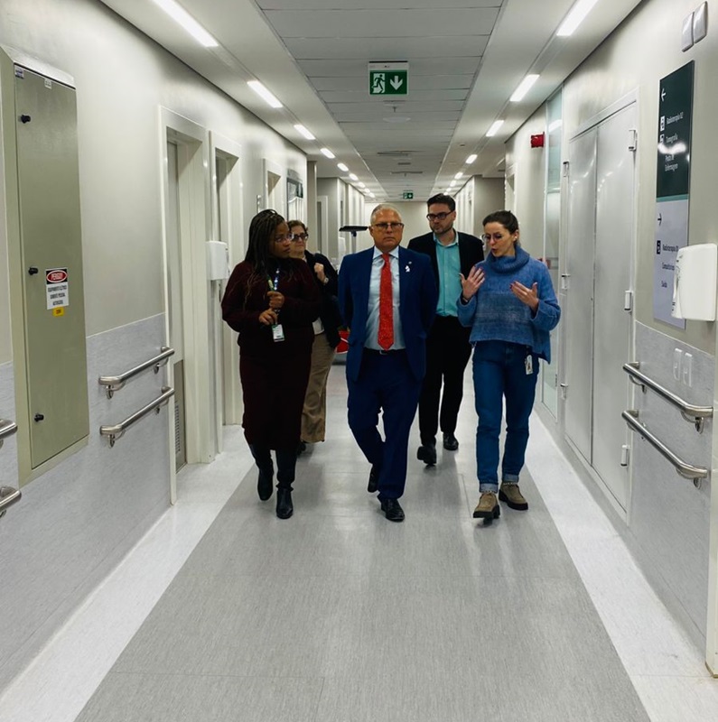 Após a apresentação, a comitiva da OPAS conheceu as instalações do Centro de Oncologia e Hematologia (COH), inaugurado em 2024. A gerente da Internação do Hospital Nossa Senhora da Conceição (HNSC), Lana Catani, orientou a visita e destacou a contribuição do GHC no tratamento do câncer em Porto Alegre – 49,7% das quimioterapias realizadas na Capital são feitas pelo GHC.