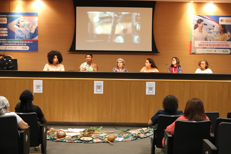 Na mesa de abertura, estiveram presentes a diretora de Atenção à Saúde do GHC, Rosana Nothen, a gerente de Atenção Primária à Saúde do GHC, Gerusa Bittencourt, a presidente da Comissão de Promoção da Igualdade Racial do GHC (Ceppir – GHC), Fernanda Vargas, a coordenadora do Programa de Residência Multiprofissional de Atenção à Saúde Mental do GHC, Christiane Silveira Kammsetzer, a coordenadora do Programa de Residência Médica em Medicina de Família e Comunidade, Brendha Silva Givisiez, e, representando o Conselho Municipal de Saúde, a assessora da secretária executiva do Conselho, Rosemari de Souza Rodrigues.