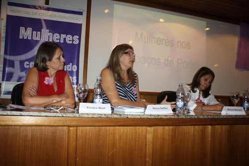 Na noite desta quinta-feira, 15 de março, a Comissão de Gênero, a Comissão de Licitação e a Coordenação de Direitos Humanos do Grupo Hospitalar Conceição (GHC) receberam funcionários da instituição para o evento “Mulheres nos Espaços de Poder”. O encontro, que teve início às 20 horas, trouxe, ao mezanino do Hospital Conceição, a secretária de Política para as Mulheres de São Leopoldo, Necca Steffen, a secretária-geral do Rio Grande do Sul, Miriam Marroni, e a secretária Especial de Estratégias e Inovação da prefeitura de Canoas, Maria Eunice Wolf.