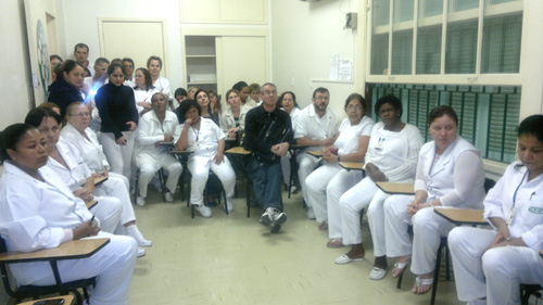 De 26 a 29 de março, enfermeiros e técnicos e auxiliares de enfermagem da Internação do Hospital Conceição (HNSC) participaram da atividade “Conferências noturnas sobre práticas de Enfermagem: indo além do como fazer e discutindo o porquê fazer”. O objetivo foi proporcionar, aos trabalhadores do turno da noite, um espaço de discussão sobre as práticas de enfermagem, suas técnicas e rotinas. Buscou também capacitar sobre procedimentos específicos das unidades especializadas, além de realizar diagnóstico da atual forma de se fazer saúde, contrapor as propostas e sugestões da equipe e revisar processos já existentes.