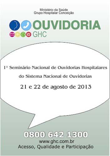O 1º Seminário Nacional de Ouvidorias Hospitalares do Sistema Nacional de Ouvidorias do SUS ocorrerá nos dias 21 e 22 de agosto no Hotel Continental em Porto Alegre. O evento, promovido pela Ouvidoria do Grupo Hospitalar Conceição (GHC) em parceria com o Departamento de Ouvidoria-Geral do SUS (DOGES), é uma iniciativa pioneira e tem como objetivo principal a troca de experiências entre as instituições para qualificar o atendimento prestado ao cidadão.