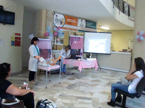 O Hospital Fêmina comemorou a Semana Estadual do Bebê nesta sexta-feira, 22 de novembro, com uma série de atividades para incentivo ao aleitamento materno. Das 11h às 14h, no saguão da instituição, nutricionistas, enfermeiros, médicos e residentes distribuíram fôlderes informativos e deram orientações ao público sobre amamentação. No transcorrer, houve breves palestras sobre a importância do aleitamento materno exclusivo até os seis meses de idade, bem como sobre a importância do contato pele a pele entre mãe e bebê, entre outros temas relacionados. Também foram recolhidos frascos de vidro com tampa para armazenamento de leite humano, de campanha lançada na comunidade interna e externa.