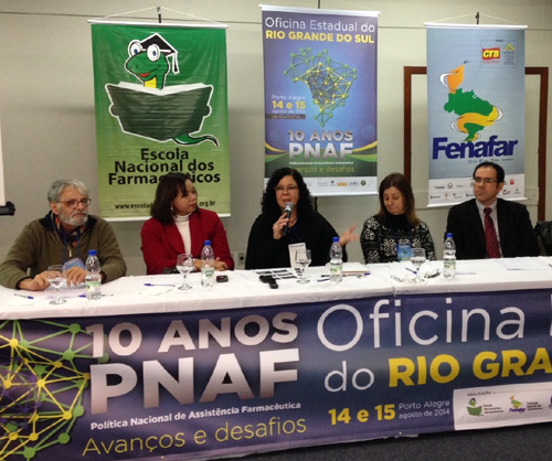 À tarde, a mesa intitulada “Avaliação da PNAF: 10 anos passados e 10 anos futuros” dominou as atividades. Sob o comando da diretora da Escola Nacional dos Farmacêuticos, Denise Bueno, o debate foi enriquecido com as falas do representante do Movimento HIV/Aids, José Hélio Costalunga; da coordenadora de Assistência Farmacêutica da Secretaria Estadual do Rio Grande do Sul, Simone do Amaral; da diretora-presidente da Fundação Estadual de Produção e Pesquisa em Saúde, Irene Porto Prazeres, e do diretor-técnico do Grupo Hospitalar Conceição, Paulo Bobek.