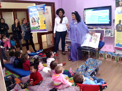 A Comissão Especial de Políticas de Promoção da Igualdade Racial do Grupo Hospitalar Conceição (Ceppir/GHC) promoveu, na manhã dessa terça-feira, 5 de maio, uma atividade lúdica com as crianças da Escola de Educação Infantil La Li Lu, conveniada ao GHC. O objetivo da intervenção foi estimular, desde a infância, o respeito pela diversidade racial existente no Brasil. “Essa abordagem contribui com o fortalecimento da autoestima das crianças negras, que geralmente não se veem como personagens de histórias infantis”, comenta o coordenador do Centro de Resultados Participação Cidadã do GHC, Elpídio de Souza.