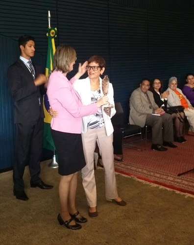 A assessora da diretoria do Grupo Hospitalar Conceição, psicóloga Carmen Silveira de Oliveira, foi agraciada com o Prêmio Neide Castanha, homenagem anual pelo Dia Nacional de Enfrentamento da Violência Sexual contra Crianças e Adolescente, 18 de maio, conferida pela Secretaria de Direitos Humanos da Presidência da República e pelo Comitê Nacional de Enfrentamento da Violência Sexual Contra Crianças e Adolescentes. A entrega da honraria ocorreu nesta quarta-feira, 20 de maio, no Salão Nobre da Câmara de Deputados, em Brasília. Carmen foi destacada em reconhecimento pelo trabalho desenvolvido na própria Secretaria, quando foi secretaria nacional dos Direitos da Criança e do Adolescente, no período de 2006 a 2012.