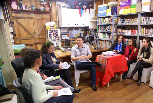 A diretora-superintendente do Grupo Hospitalar Conceição (GHC), Sandra Fagundes, participou, na tarde desta quarta-feira, 27 de maio, de uma conversa com a equipe do Chalé da Cultura. A coordenadora do Chalé, Ana Poletto, e o gerente do Serviço de Saúde Comunitária do GHC, Victor Nascimento Fontanive, apresentaram a história e as atividades que o Chalé realiza com o intuito de promover a continuidade dos trabalhos ao longo do ano.