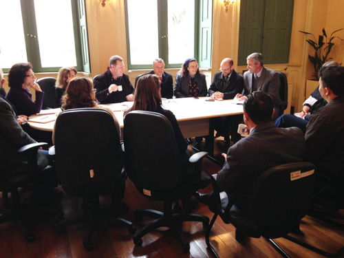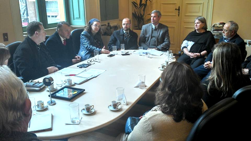 A construção das novas sedes das unidades de saúde Jardim Leopoldina e Coinma, do Serviço de Saúde Comunitária do Grupo Hospitalar Conceição, foi tema de uma reunião na tarde desta quinta-feira, 23 de julho, na prefeitura de Porto Alegre. O prefeito em exercício, Mauro Pinheiro, recebeu a diretora-superintendente do GHC, Sandra Fagundes, o diretor administrativo e financeiro do grupo, Gilberto Barichello, o secretário municipal de saúde, Fernando Ritter, e representantes das pastas municipais da Fazenda e da Educação, e dos Conselhos Locais de Saúde das duas unidades.