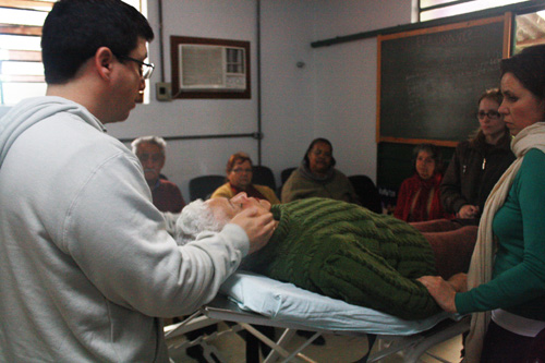 A Unidade de Atenção Primária Barão de Bagé realizou sessões de Reiki, uma terapia milenar que transmite energia e harmonia por meio do toque das mãos, nesta sexta-feira, dia 24. As sessões de Reiki foram ministradas por alunos que fizeram o Curso de Iniciação em Reiki, promovido pelo Chalé da Cultura. Após a conclusão do curso, os formandos foram convidados para aplicar as técnicas em unidades de saúde do GHC. Além da Unidade de Saúde Barão de Bagé, as ações serão realizadas na UPA Moacyr Scliar, no CAPS AD III e no Hospital Criança Conceição.