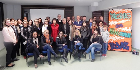 O gerente de apoio do Grupo Hospitalar Conceição, Márcio Belloc, e o coordenador da Participação Cidadã, Elpídio de Souza, representaram o GHC na terceira edição do Café com Parceiros do Polo Marista de Formação Tecnológica. O evento foi realizado no dia 22 de julho, na sede da Rede Marista, e reuniu outras doze instituições parceiras. Na ocasião, houve uma apresentação do Instituto Marista e a atuação marista no mundo, no Brasil e no Rio Grande do Sul.