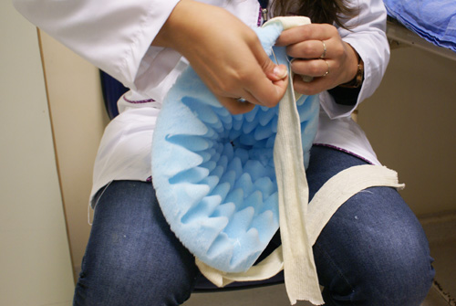 Inicialmente, as botinhas eram produzidas para o setor. Mas com o ótimo resultado obtido, passaram a ser feitas para diversas internações. “Toda hora ligam pedindo pares. Não dou mais conta sozinha! Agora as meninas estão me ajudando bastante”, disse elogiando as estagiárias do setor. “E o custo é bem mais baixo”, completou comparando às anteriormente compradas.
