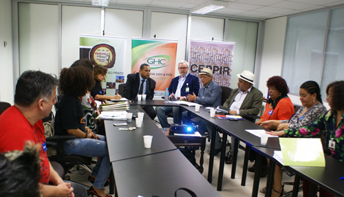 Durante o encontro, o coordenador da Participação Cidadã do GHC, Elpídio de Souza, relatou o trabalho desenvolvido pelo setor por meio das comissões e iniciativas de inclusão social, como a Comissão Especial de Promoção de Políticas da Igualdade Racial (Ceppir), a Comissão Especial de Promoção de Políticas de Acessibilidade e Mobilidade (Ceppam), a Comissão de Gênero (Cegênero), o Plano de Investimentos, o Programa Jovem Aprendiz, o Núcleo de Assistência Espiritual, o Conselho Gestor, o voluntariado e outros. Ele também falou sobre a compra institucional por meio do Programa de Aquisição de Alimentos (PAA), pelo qual o GHC adquire produtos agrícolas das comunidades quilombolas do Estado, instituindo uma nova forma de relação comercial.