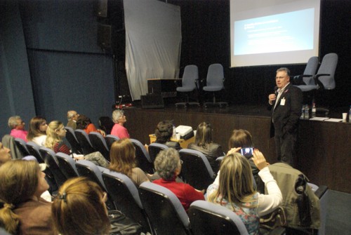 A diretora-superintendente do Grupo Hospitalar Conceição (GHC), Sandra Fagundes, introduziu o tema comentado sobre a diferença que as palavras fazem em nossa vida, especialmente na maneira como os profissionais transmitem aos seus pacientes o que eles precisam saber.