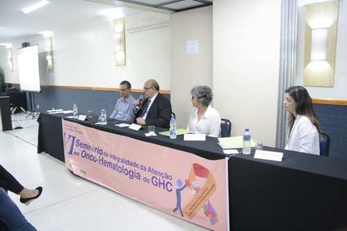 Também participaram da mesa de abertura a representante da Gerência de Ensino e Pesquisa do GHC, Edelves Vieira Rodrigues e Cíntia Raquel Heldt de Carvalho, enfermeira e precptora da residência em onco-hematologia do HSNC.