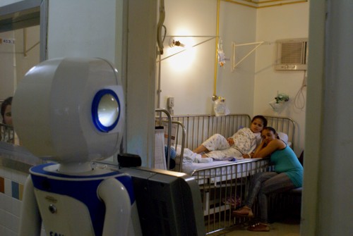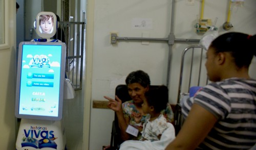 O Hospital da Criança (HCC) recebeu uma visita diferente na manhã desta terça-feira, 10 de novembro: um robô que conta histórias. Logo na entrada, olhares curiosos e desconfiados o receberam. Crianças pequenas e seus pais cochichavam na recepção. O robô, completamente interativo e automatizado, faz parte do projeto “Histórias Vivas” da 61º Feira do Livro de Porto Alegre, apoiada pela Caixa Econômica Federal.