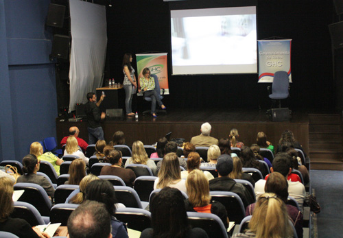 Na abertura do evento, a coordenadora do Gerenciamento de Risco do GHC, Rosana Mirandola, destacou a necessidade de alterar os métodos de atendimento em se tratando de segurança do paciente: “Muitas vezes, a segurança do paciente não depende apenas de grandes investimentos financeiros, e sim de uma mudança no processo de trabalho”, explica. Compondo a mesa de abertura ao lado dela, estava o gerente de Apoio do GHC, Márcio Belloc.