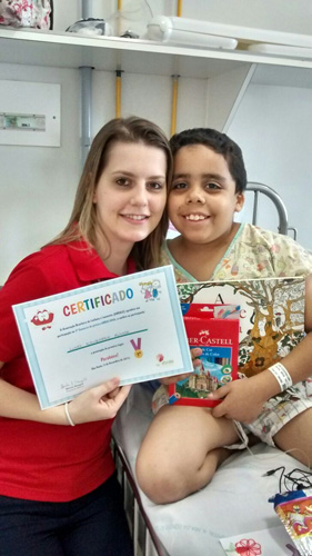 O paciente da Onco-Hematologia do Hospital da Criança Conceição Lukas Almada Albuquerque, 11 anos, foi o vencedor da região Sul, do 2° Concurso de Desenho da Associação Brasileira de Linfoma e Leucemia (Abrale). Nessa terça-feira, 15 de dezembro, a representante da Abrale do Rio Grande do Sul Juliana Schwanke Martini entregou o presente da associação, que premiou Lukas pela criatividade do desenho. Vários pacientes do serviço participaram do concurso.
