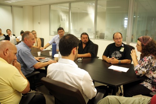 Estiveram presentes a diretora-superintendente do GHC, Sandra Fagundes, o diretor técnico José Fossari, o gerente de Recursos Humanos Diogo Santos, e representantes da diretoria do Sindisaúde, da Aserghc e da comissão de trabalhadores temporários.