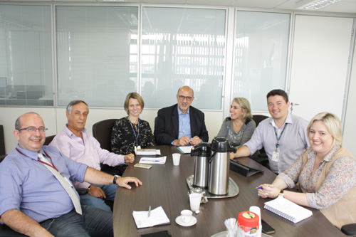 Participaram também da reunião o Responsável Técnico de Odontologia do GHC e assessor da diretoria, Victor Fontanive, a assessora da Gerência de Internação do Hospital Conceição Jacqueline Webster, a coordenadora do Centro de Especialidades Odontológicas (CEO) do Hospital Conceição, Ana Paula Braun, e a odontóloga da UPA Moacyr Scliar Jaqueline Bicca Machado.