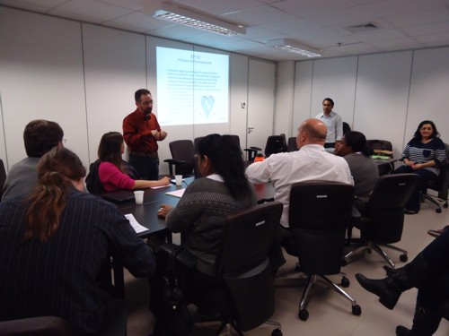 O treinamento foi realizado na sala compartilhada da Gerência de Saúde Comunitária do GHC e reuniu médicos, enfermeiros, técnicos de enfermagem e delegados do PI.