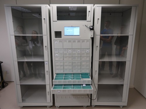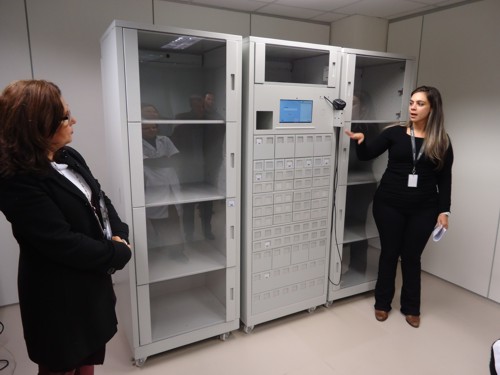 O dispensário eletrônico armazena os medicamentos e os materiais médicos, que são acessados exclusivamente, com o uso de leitor de código de barras, por funcionários autorizados: os da Farmácia para abastecer, processo realizado periodicamente, e os da Enfermagem para retirar para o paciente, conforme prescrição médica. O equipamento substitui o antigo sistema coletivo de dispensação de medicamentos, no qual muitas pessoas tinham acesso a esses produtos. Entre as vantagens, o aumento da segurança para o paciente na administração do medicamento, a diminuição do desperdício, uma acuracidade no controle de estoque de 95%, índice considerado muito bom, e a possibilidade de emissão de relatórios de consumo, de usuários e de funcionários habilitados.