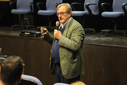 O pesquisador, que estuda o impacto da luz no ritmo circadiano humano, com ênfase na ciência translacional, compartilhou suas experiências e seu trabalho com os participantes, que acompanharam atentamente. Na ocasião, Roenneberg falou sobre o relógio circadiano, que regula os ritmos materiais e psicológicos dos seres humanos, como a digestão, o sono e a renovação das células. “A velocidade que você bate os dedos na mesa ou a força com que você pega um objeto, tudo é controlado pelo relógio circadiano”, explicou o pesquisador, que, ao final do evento, concedeu aos participantes um espaço para esclarecimento de dúvidas.